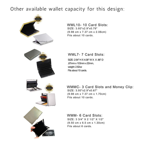 • This stainless steel and Aluminum wallet secured with a metal push-tab closure.