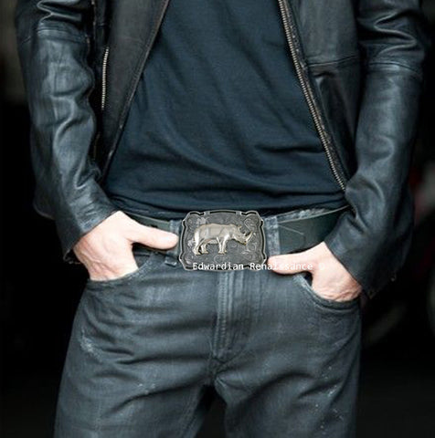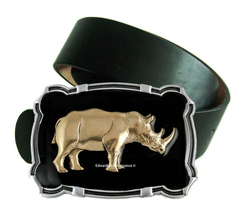Large Rhino Belt Buckle inlaid in Hand Painted Silver Swirl Enamel Neo Victorian Safari Rhinoceros Ornate Buckle with Assorted Color Options