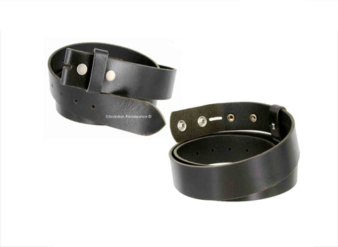 Made with snaps for interchanging buckles, Just "snap on" and "snap off". 1.5" wide ready for your Edwardian Renaissance buckle of choice. Size is measured from buckle end to the middle end to the middle hole at the tip end.