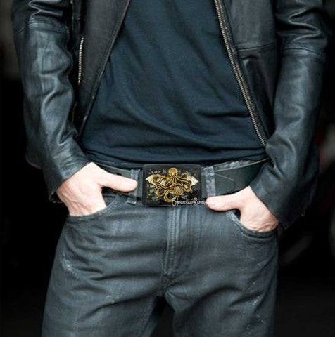 Octopus Gas Mask Belt Buckle: Hand-Painted Steampunk Buckle