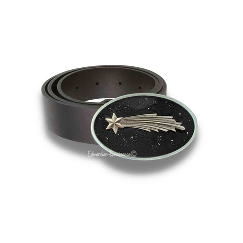 Shooting Star Belt Buckle Inlaid in Hand Painted Glossy Black Onyx Enamel Art Deco Celstial Design Inspired Available in Other Colors