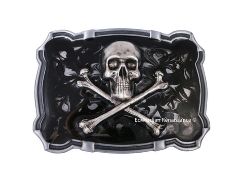 Skull & Crossbones Belt Buckle: Hand-Painted Gothic Enamel Design