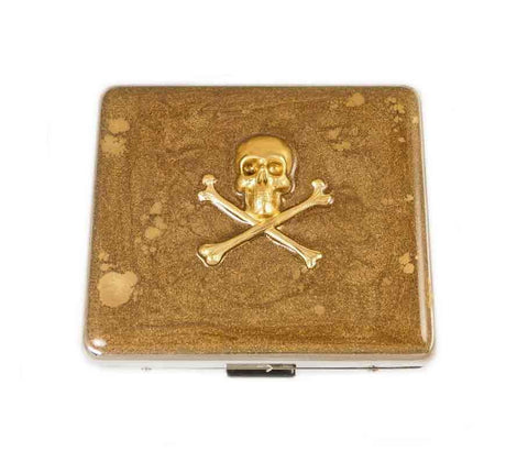 Skull and Crossbones Weekly Pill Box with 8 Compartments in Metallic Gold Enamel with Personalized and Color Options