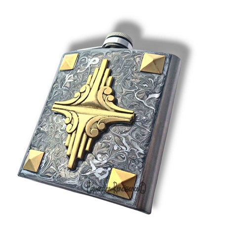 Art Deco Hip Flask: Hand-Painted Silver Swirl Enamel, Personalized Option