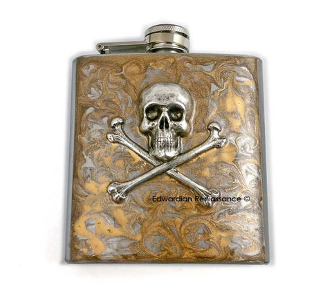 Gold Skull & Crossbones Flask: Hand-Painted Goth Style, Personalized