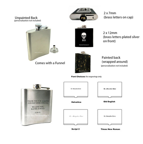 Back of flask- Comes unpainted with an option to upgrade to a painted back, which has a wrap-around look (see sample image).