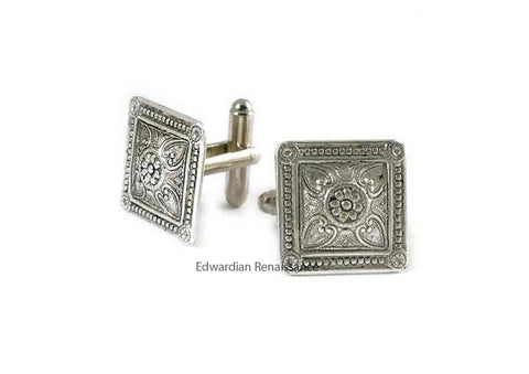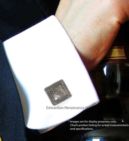 Art Deco Cuff Links Antique Sterling Silver Moorish Design Inspired Neo Victorian Cufflinks with Tie Clip and Tie Pin Set Options
